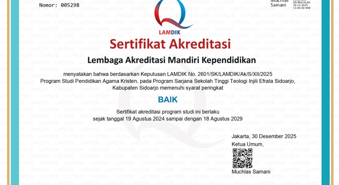 Deskripsi Program Studi S1 Pendidikan Agama Kristen (PAK) Sekolah Tinggi Teologi Injili Efrata Sidoarjo